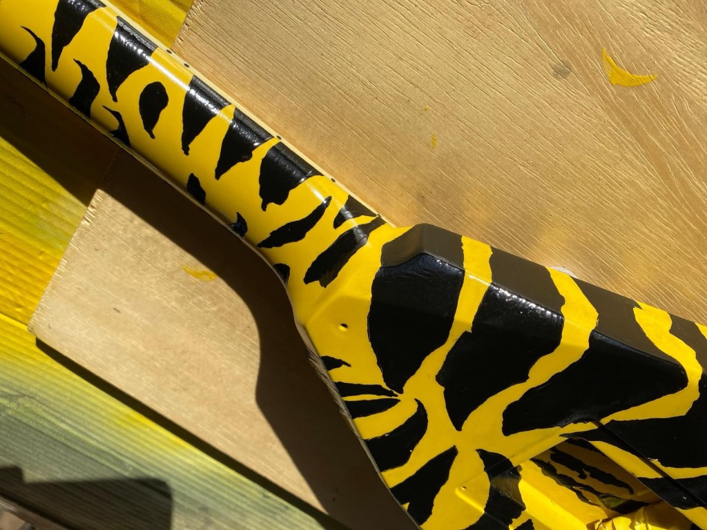 Overall, this project had a huge learning curve! Matching those stripes to the catalog photo was very time consuming. Also, I would go a different way re the masking. Completely hand painting the Stripes would be preferred to the stripes being masked off.